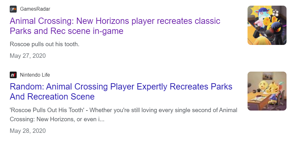 I didn’t initially plan on making more beyond the first I released, a recreation of a scene from NBC’s comedy Parks and Recreation. However, the attention it received on Reddit in particular combined with the heightened popularity of Animal Crossing when I released it in May of 2020 caused notable gaming news outlets to write articles on it. Although I’d never receive the same amount of attention again, the success inspired me to create more videos and use a YouTube account I’d created years prior to house them all. The most popular of my videos has received over 230k views to date.